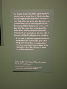 Saturday morning, bagels at Ted and Henry’s on East 77th with Henry’s family, and then the 6 train all the way downtown to Spring Street for lunch with cousin Patti and her daughter, who lives on the Lower East Side and works in the film business. Family. From there, to the Morgan Library. I’d seen there was an exhibition about Kafka so resolved to go to that lovely place, even before I received word from an acquaintance that my great-grandfather is featured! In 1911, a Yiddish theatre troupe performing Jacob Gordin’s plays arrived in Prague, where Kafka went to see them. He was especially taken with Gordin’s work. There’s a passage in my book about that event and my pride that Kafka was a fan.