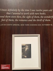 Down to an exhibit about Belle da Costa Greene, an amazing story. She was black but passed as white – Portuguese – and became the chief librarian and purchaser for J.P. Morgan’s collections. What a job – she got to buy rare works and beautiful things costing millions and was powerful and famous. The exhibit dealt with the injustice of “passing” – there were others like her who could never have achieved what they did had they looked more black.