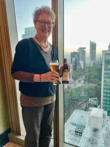 Pix: The massive Aztec calendar. The god Chac Mool, possibly a rain god – so Egyptian, no? Hand carved stamps, used for fabric, pottery, and also for the human body. The god of music. Lunch at the museum – hibiscus flower juice, enchilada with molé, quesadilla with cheese, and Mexican hot chocolate. MMM. Codexes. Annie on the 14th floor of Sofitel with a Mexican craft beer in a photo for her son Nick, who has a craft beer website. Onward!
