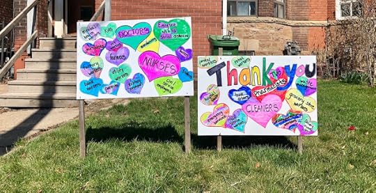 For your joy, today: Anna and the boys made these and put them in front of their building, where they can be seen by passersby on foot, in cars, in streetcars. So beautiful.