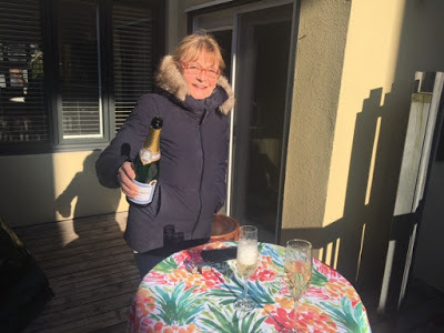 Celebrated neighbour Monique's birthday with crémeux, apart on her deck in the chilly sun. Tonight, we'll meet for aperitif as usual, my deck above hers.
