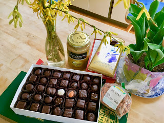 Just Googled "artisanal chocolate near me" hoping to find a place that delivers - I'm feeling a powerful need for good chocolate. The thrill of this moment is that Mrs. Cardinal, with her orange beak and soft brown feathers, is perched on the clematis just outside. I keep a ceramic plant base filled with water on the fence, in which the birds drink and bathe. Hope she will try it. So far, no luck with chocolate. The dark chocolate bikkies will have to keep me going. Can I get some Easter treats somehow?