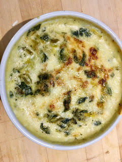 Last night, made a gratin of leeks, broccoli, and spinach in a very rich cheese sauce - comfort food of the best sort. Covid casserole!