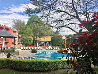 Saturday - a day of rest, more or less. Some have signed up for two intensive three hour workshops, but Curtis and I did not. So today, we set out with a driver for Las Grutas, a hot springs with a grotto about 12 minutes from the hotel. It was not what we expected; we were almost the only gringos there and there was little in English, so we wandered about trying to figure out where you changed and how it all worked. We did figure it out, but Curtis decided he did not want to walk around in his bathing suit, particularly as the morning was chilly. So he found a comfortable rock to perch on, and I plunged into the hot springs pool.