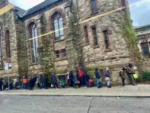 The cat and I are sitting by the fire. On we go, into the merry season. As I remember that the season is not merry for many. This is part of the lineup for a food bank at a local church.