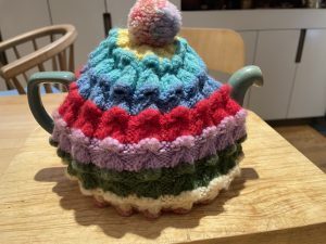 A quiet, solitary NY Eve after time across town with the grandboys this afternoon – they’re getting ready to go for a few days in Florida tomorrow with their godmother Holly. Lucky! It’s not raining and not cold, but the sun is elusive. I’m drinking tea poured from a pot covered with Auntie Do’s tea cosy that I found recently, taking me back to many, many cups of British tea with my relatives, always with a cosy. Always with the pot warmed beforehand with a swish of boiling water.