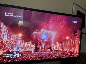 Last night I found the French channel and watched the celebrations on the Champs Élysées. A fabulous video display projected on the Arc de Triomphe and then fireworks for days. Those French – they know how to put on a show. It was midnight before I knew it. Yes, I actually lasted till midnight! Amazing.