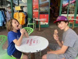 The boys are flying home from Florida today with godmother Holly, after a fabulous vacation; Holly Facetimed me with the boys in the background, splashing in the pool like seals. She also sent pictures of them eating ice cream or dinner at a movie theatre and devouring pizza in bed. Poor Anna is going to have a hard time adjusting them to the harsh reality of Toronto in January – school tomorrow.