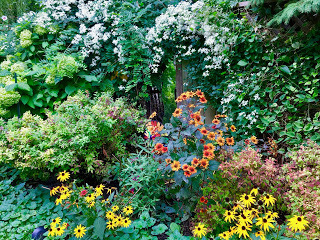 Fall is moving in, the days shorter and greyer, though still warmish. The garden at its most beautiful, because we know how soon the end is nigh. How it feeds my soul, this beauty.