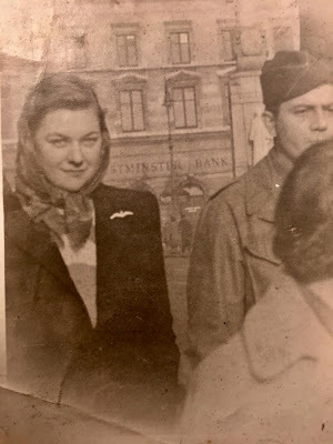 Here on their second date, November 1944, both 22, my mother with what I call her 'Lauren Bacall smoulder.' Not inherited by her girlchild.