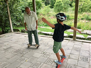 It takes some getting used to, but mostly, he is sunshine itself. When we got back, he exclaimed at the top of his lungs to his dad, "You should see their house, Dad. IT HAS STAIRS!"