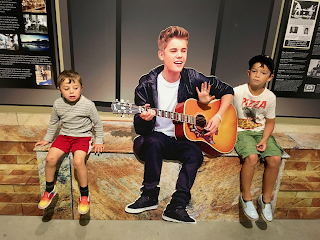 But I'm glad I saw it, and I'm glad we all went to the country together. Though yesterday, when it dawned pouring with rain, predicted to last all day, and us with the Wild Bunch - there was despair. How to pass the time and burn off steam in the rain? We went to the Stratford museum which has some interesting stuff including - scream! - the Justin Bieber collection. We went shopping at Giant Tiger, one of Anna's favourite stores, which killed an hour. Anna took them to a train museum in St. Mary's while I was at the play. And finally the sun emerged and the beasts were unleashed. Their energy is almost frightening, especially Ben's, as his is not just physical, it's verbal. He never stops talking at top volume. He's very interested in death these days, and the word 'hate,' testing the word constantly. As we were looking to buy a ball, he said, "I hate balls!" Or even, to me, "I hate you."