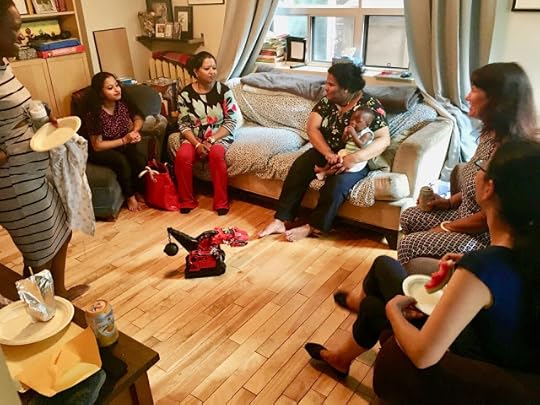 What made me marvel was that, of the ten or twelve children there, my two grandsons were the only Caucasians. The mothers originated in Sri Lanka, the Caribbean, Japan; a First Nations grandmother, one of Anna's good friends, is raising her 3 grandchildren for her daughter who's working and in school. These women know each other - and each other's children - from the drop in at the school run by Miss Claire, who was also at the party. One woman brought her tiny 8 month old baby who'd been born premature; every woman at the party held that baby. Anna said she's the "therapy baby"; any woman longing to have another child can hold her for a bit and maybe satisfy that itch. Miss Claire said when the principal of the school is having a bad day, she comes to the drop in and says, Where's that baby? One hug and she feels better.