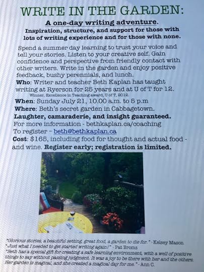 I attended a lovely summer writing session in a garden in the east end of Toronto years ago, I'm thinking in 2012 or 2013. After some sleuthing online, I think you might have been the person who hosted this.