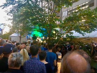 When I saw the Toronto Jazz Festival was producing a free concert on Saturday - the Downchild Blues Band with guest Dan Aykroyd - I couldn't imagine where it was. The map showed somewhere on Bloor, so I imagined they'd taken over a small courtyard somewhere. But no - there was a stage right in the middle of Bloor Street near Avenue Road. Thousands of people gathered around, and the best, the absolute best music, raunchy, joyful rhythm and blues. Carol and I did not stop moving to the beat from start to finish.