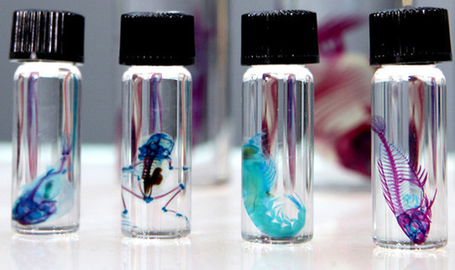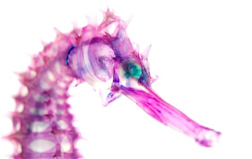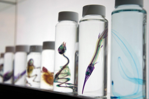 Fisherman-turned-artist in Yokohama City, Japan, Tomita creates art using the skeletons of various dead marine specimens, which he preserves and then colors with bright shades of dye.