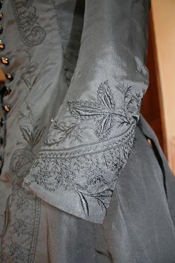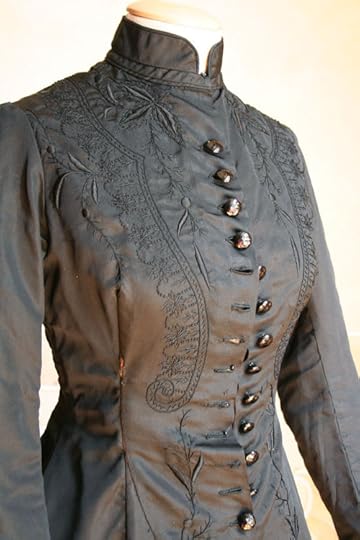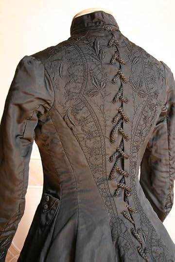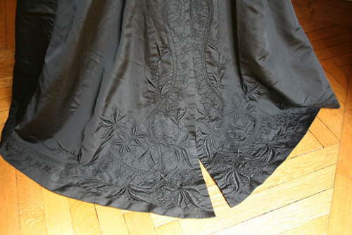 Mourning dress in two pieces, black silk faille embroidered in black with decorative lacing