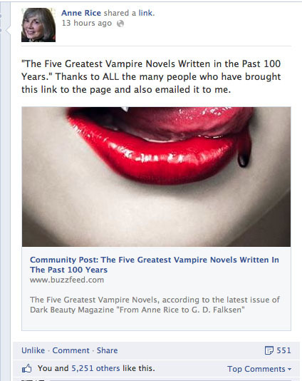So the fantastic Anne Rice just posted the article my book is in along with hers…. This is a very good Tuesday.