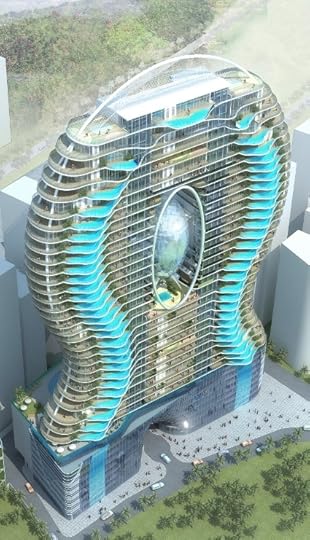 Bandra Ohm 140m residential tower (named the Parinee Ism by the architects), currently under construction in Mumbai, is designed to evoke the ripple effect generated by water droplets.Each unit features a narrow vertigo-inducing infinity pool