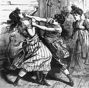 Think that women’s boxing or MMA fighting is a recent development in fighting sports? Think again. From the 18th to early 19th century it was not uncommon for women to fight in the ring as well as men. Back then boxing was not the boxing of today, not by a long shot. Venues tended to be saloons, pubs, small arenas, or even open streets and back-alleys. Rules differed from venue to venue, but for the most part fights were done bare knuckled, and many fights were a no holds barred type setup. Some fights even included deadly weapons such as clubs, swords, and staves. Needless to say, injury and death was common.