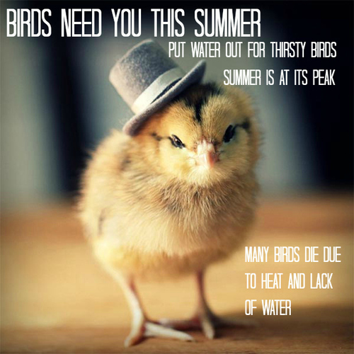 Reminder, it is really hot outside and our small animal friends do not have access to water like we do. So help them out and put out a bowl full of fresh water in your yard, on your balcony, or on your window still and do a small creature a good turn by keeping them alive and hydrated. Added bonus: doing this, you will get to see what comes for the water like your own wild nature TV show but in real life and outside your window. I have been doing this since it has gotten hot along with a huge bowl of seed and have now made friends with about 5 crows that are showing up 6 times a day along with a squirrel who I think I am going to name Peter.
