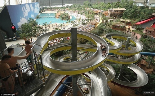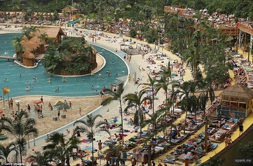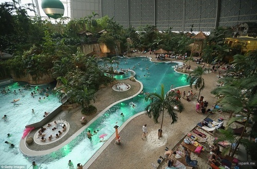 Sandy beaches, clear blue water, palm trees … you think we’re talking about a tropical island? Well, in a sense, this is an island, but it is located under the dome in the indoor leisure and entertainment complex, which is located on a former Soviet air base in Krausnick, Germany.