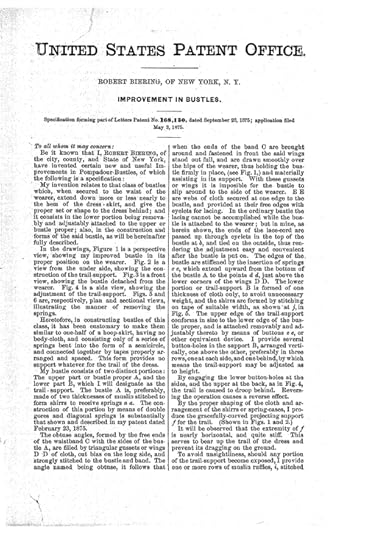 Here’s a very lovely bustle from 1875! Make sure you don’t mix up your bustle eras!! Hand-snagged for your pleasure from Google’s digital US patent archives. Please mind the page order, as sometimes Tumblr likes shifting them about!