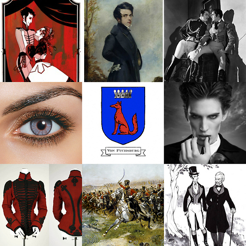 As the Baron of Fuchsburg, Korbinian was also an officer in the Prussian Army (commanding the Fuchburger Regiment, a unit most famous for its light infantry). Though the mainstay of the Fuchburger Regiment was infantry, a unit of hussars was maintained so that the Baron of Fuchsburg could remain a cavalry officer, and as such Korbinian wore the dashing uniform of a hussar in the Fuchsburg colors (red and black). The hussar uniform, largely unchanged since the Napoleonic Era, including a short jacket known as a dolman, long trousers, and sometimes a fur-trimmed jacket called a pelisse (worn over the shoulder), all heavily braided. The uniform also included riding boots and a shako hat.
