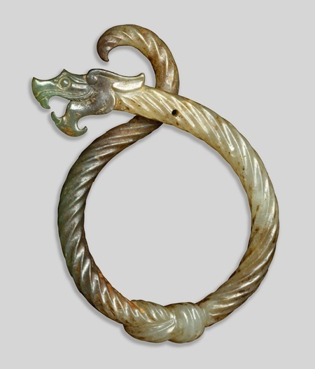 Jade pendant - knotted dragon, Eastern Zhou...