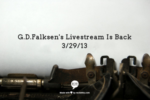 This Friday night at at 12:30 midnight to Saturday 1:30am (EST) I will do another livechat. I am changing the day this week as Sunday is a holiday. I will have more reading from the new novel and info on all sorts of great things coming up. Join in at the link above so you can get updates as to when the chats are happening.