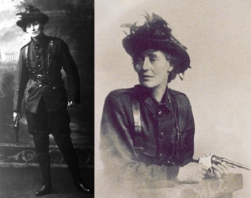 Constance Georgine Markievicz, Countess Markievicz (4 February 1868 – 15 July 1927), member of Irish Sinn Fein and Fianna Fail. Also one of the first women ever elected into a cabinet position. Markievicz was vital in the Easter Rising of 1916 and the Civil War in Ireland. Undoubtedly a complete badass. I mean, look at that pistol.