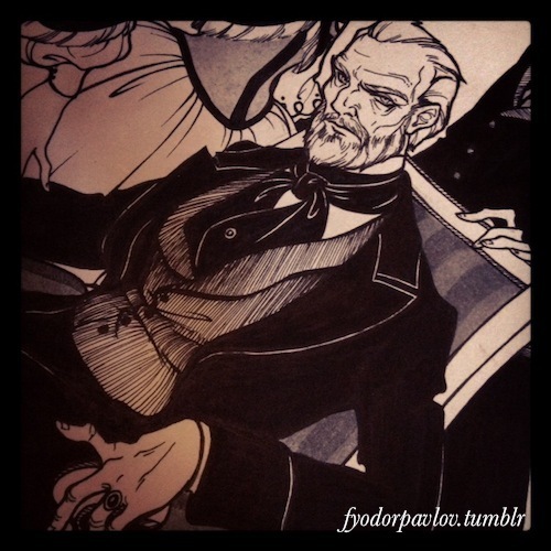 As promised, some details on one of my big summer projects. Lawrence and I are illustrating G.D. Falksen’s next book, The Ouroboros Cycle, Book One: A Monster’s Coming Of Age Story, which will be out this fall. Here’s a glimpse at the first of my illustrations. Drawing grisly old men is kind of my new favorite thing.