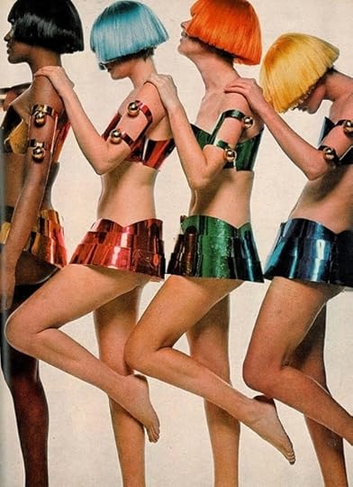 Dutch-boy wigs and polished metal turnouts by Courreges, photo by Bert Stern, Vogue 1969