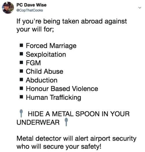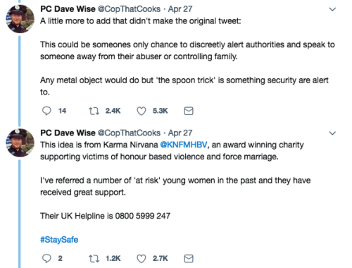 Heard some important information on Twitter today, and thought I’d post it here for anyone who may not have heard it. This is actually a thing, devised by human rights organisation called Karma Nirvana. Reblog to save a life?