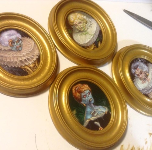 Prepping the #originalpaintings of #cameocreeps #goldengirls Gholden Ghouls #kickstarterexclusives for a #collector #art #artwork #illustration #monsters #zombies #horror #spooky #darkart #instadaily #instaart #fantasy #fanart #mashup #artistsoninstagram #illustrator #illustratorsoninstagram