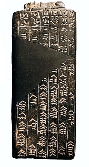 The Middle Babylonian Almanac above lists the 12 months of the Babylonian calendar on black stone. Each month is followed by a list of propitious days, or days on which the outcome of activities would be favourable. At the top of this stone tablet, which is about 17cm in height, is a loop handle in the shape of a crouching lion. (Source.)