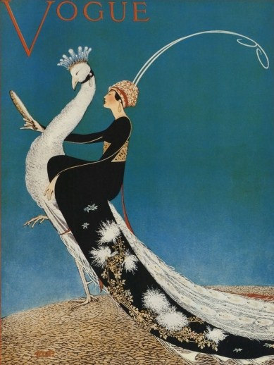 Art Deco Vogue Cover Poster - Woman on White Peacock 1918