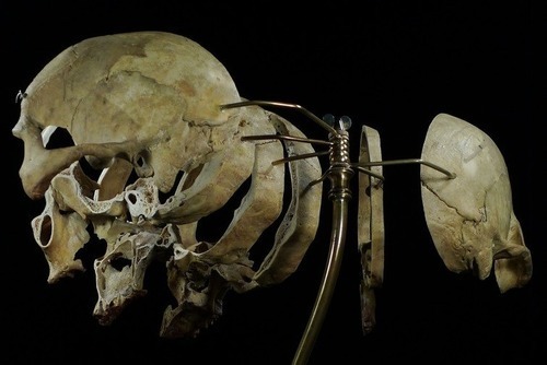 Exploded and dissected skulls. Beauchene Skull - Mounted preparation of human skulls were used to demonstrate better views of separate cranial bones. 19th Century. The above images, I presume, were most likely prepared and mounted by RMC.