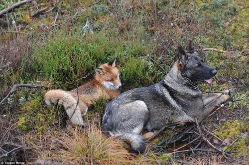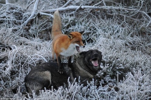 The tender and playful relationship between the two is captured in these photos and Berge was so inspired by it that he decided to release a book chronicling the canine duo called The Fox and the Dog which will feature fairytales based on their friendship.