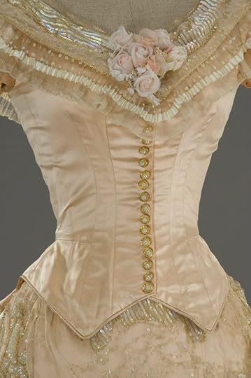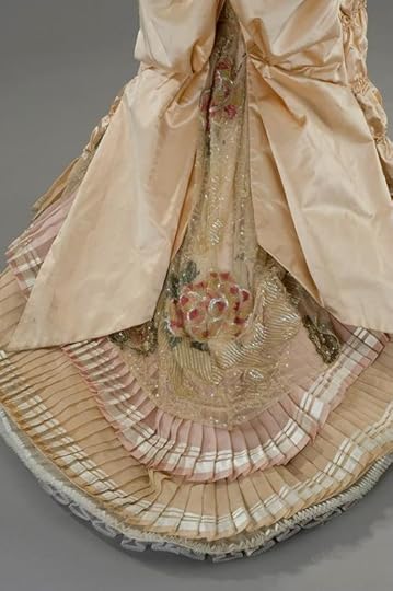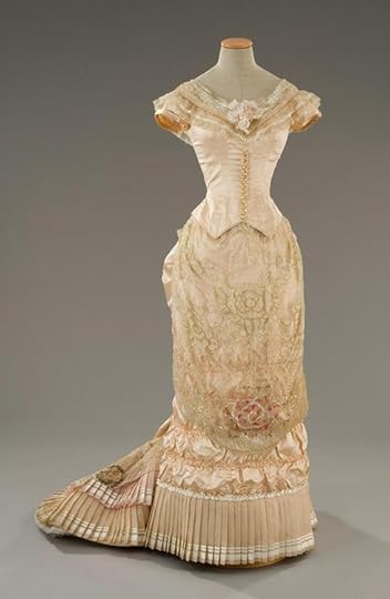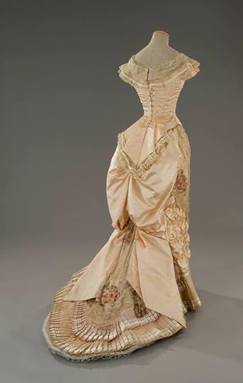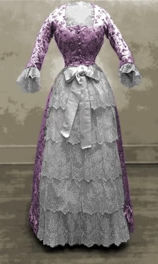 A dinner/reception dress from 1878 of pinky-lavender silk brocade with thistle flowers. I might be trying to recreate this to the best of my abilities; no one makes thistle flower brocade anymore, but I have found a brocade in a similar color with different flowers.