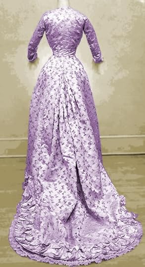 A dinner/reception dress from 1878 of pinky-lavender silk...