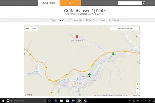 3) Click on the map tab. Here’s where it gets cool. The site will show you a historical map, and by hovering over “Toggle Historical Map,” you get the option to pinpoint the locations of the nearest Protestant and Catholic churches, Jewish synagogues, and Standesämter (civil offices). Click on “Toggle Historical Map” and you switch to Google maps, allowing you to locate where the town is today (even if swallowed up by a city). Clicking on the “Ecclesiastical” tab gives you a list of the specific parish names.