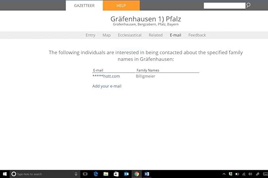 4) Click on the “E-mail” tab. This is cool, too. It allows you to enter your email address (masked) and the family name you are searching so you can connect with other researchers from that village!