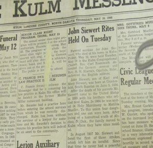 This local newspaper from Kulm, North Dakota, shows the place of birth.