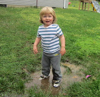 The little guy looks A LOT like I did when I was his age. Here he is in a mud puddle, and there I am at two years old in a ruffly dress that does not suit a tomboy!