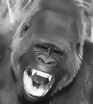 "I will not be laughed at by an overgrown monkey!" He roared and launched himself at the thing. He was promptly thrown against the other wall.