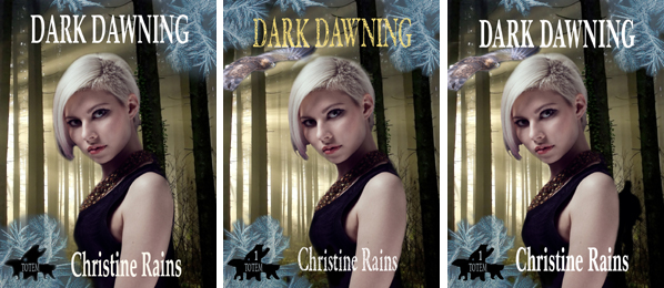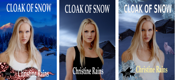 Oh man. That snowy swirl is hideous! And the middle model... a little stunned looking. Plus, I tried putting a tattoo on her. Ha! Thankfully with the model on the final cover, her hair covers her neck and chest, so I didn't have to worry about tattoos. Does the fox look like it's flying?