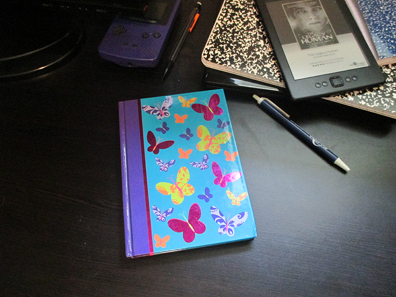 So what do I pull out of my drawer? A notebook with pretty butterflies and pink pages.