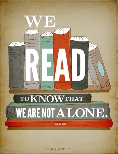 It is important for people to know that they are not alone. That's what Lewis was saying, and Vonnegut. That's the point of Emotional Baggage and Post Secret. I inadvertently touched on it in my post about representation, but then I was thinking in terms of physical appearance. But it's just as important for people to know that they are not alone in the way they feel, the secrets they keep. The anxiety, the fear, the sorrow--you are not alone in it. If you learn that from a character in a book or a stranger online or a friend or a lover or a chance meeting on the train or a child--the thing to remember is that, simply, you are not alone.