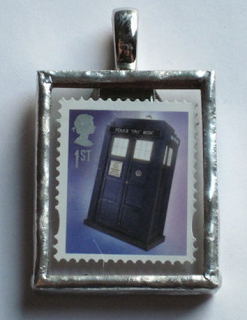 These postage stamp necklaces are made by book blogger and librarian Leila from Bookshelves of Doom. But you can't have this Tardis one, because I totally bought it before you could. (But message her; she might have more!)